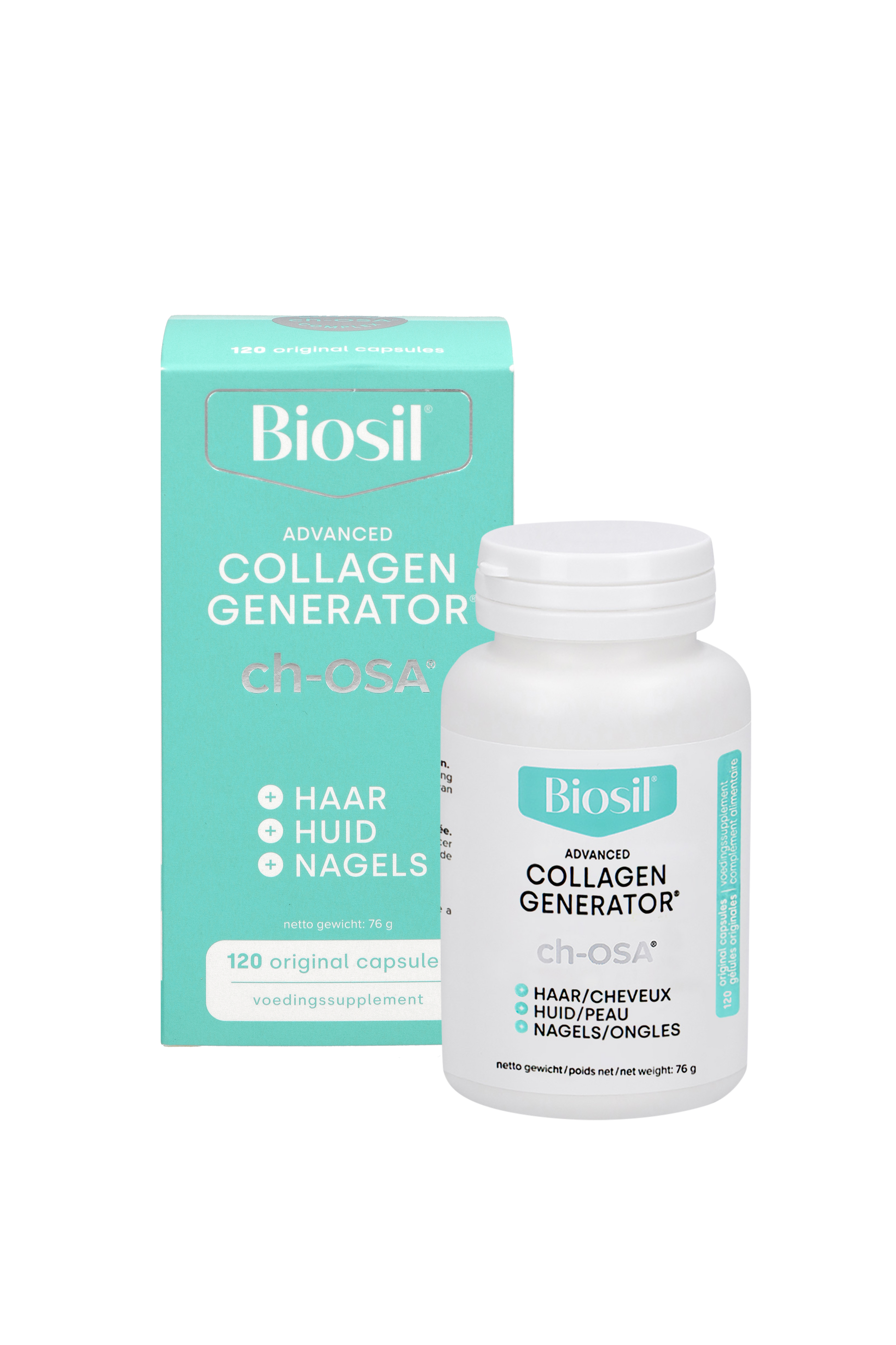 Biosil - Advanced Collagen Generator - activeert de sleutelenzymen die verantwoordelijk zijn voor de aanmaak van collageen en elastine, voor een stralende huid, sterke nagels en gezond haar. Het geheim om jouw huid van binnenuit te laten stralen.